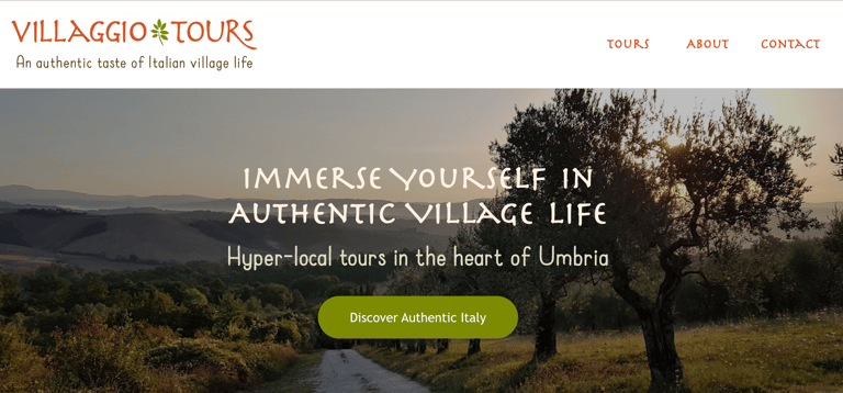 Introducing Villaggio Tours, a bespoke journey into the heart of Umbria, meticulously crafted for those who savor the art of unhurried exploration. From brand inception to website creation, I played a pivotal role in bringing this vision to life. With an unwavering focus on authenticity, the brand's small group tours embrace the essence of slow travel, allowing you to savor each moment in depth. Let Villaggio Tours be your conduit to discovering the soul of Umbria, where every cobblestone holds a story and every corner unfolds a memory waiting to be made.